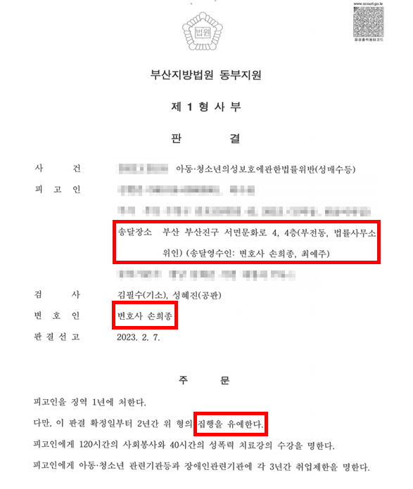 미성년자 성매매처벌 아동·청소년 성매수 집행유예 성공사례